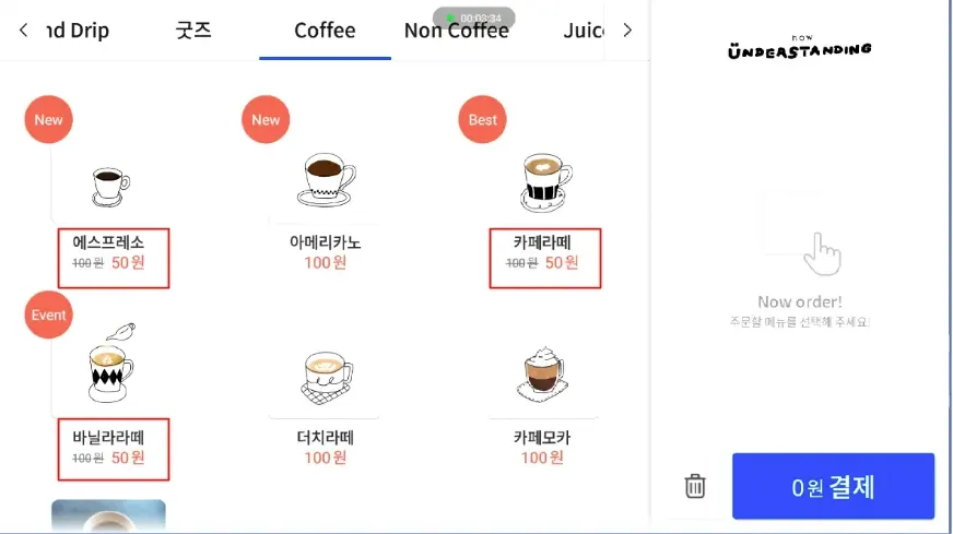 할인 등록 시 메뉴에 할인된 금액으로 자동으로 노출됩니다.