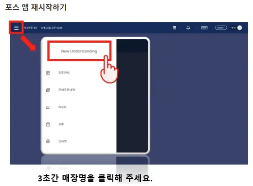 1) 사장님센터 내 메뉴 정보를 변경한 후에는 포스/키오스크를 재시작하거나, 재부팅을 해주셔야 수정된 내용이 반영됩니다.