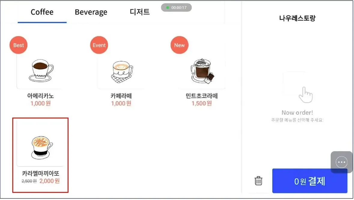 6) 키오스크에서 아래와 같이 할인이 적용되었는지 확인해주세요.
