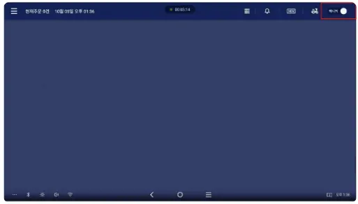 우측 상단에 매니저 흰 버튼이 왼쪽으로 가도록 누르면 주문을 받을 수 있는 화면으로 이동됩니다.