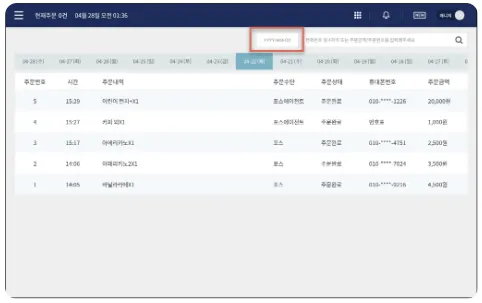 매장을 운영하다보면 가끔 고객이 예전에 결제한 내역을 취소해달라고 할 때가 있습니다. 이럴 때는 포스의 전체주문 내역에서 날짜 검색을 하시면 해당 날짜의 주문과 결제 내역을 빠르게 확인할 수 있습니다.