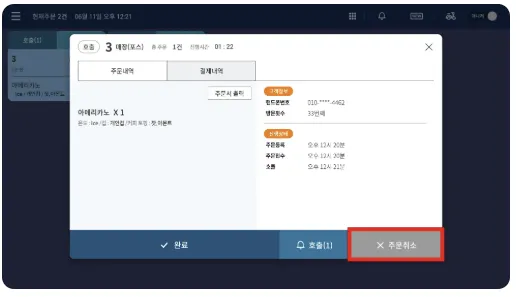 4. 메뉴 제조가 완료되면 [호출]을 눌러주세요.