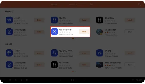 포스 내 [App store]에 접속하여 '나우웨이팅 매니저' 우측 Install 버튼을 눌러 다운로드해주세요.