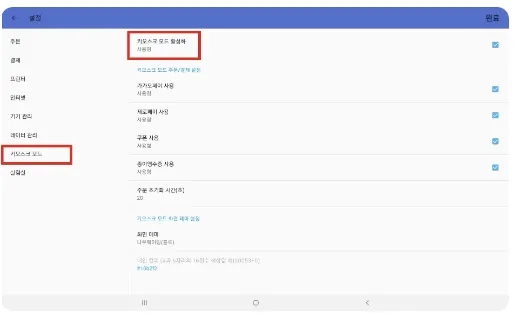 4-2) 키오스크 모드 > 키오스크 모드 활성화에 사용함으로 체크해주세요.
