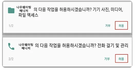 1) 설치가 완료되면 '나우웨이팅 매니저' 앱을 실행해주세요.