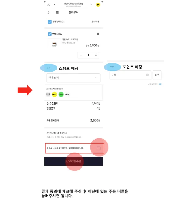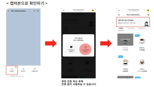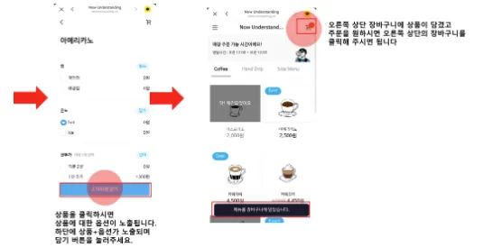 먼저 픽업오더에서 고객이 주문하는 방법은 아래 영상과 캡처본으로 참고해 주세요.