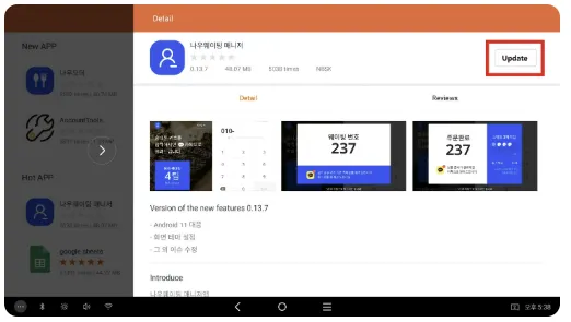 3. 업데이트하고자하는 앱을 검색해주시고, 업데이트 버튼을 클릭해 주시기 바랍니다.