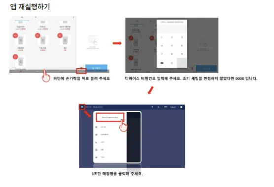 키오스크 앱 재시작 방법 혹은 기기 재부팅하는 방법이 궁금하시다면 아래 내용을 확인해 주세요.