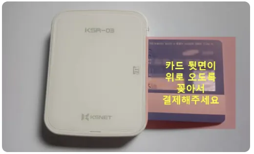 3) 카드 뒷면이 위 사진처럼 보이도록 꽂아서 결제를 해주세요.