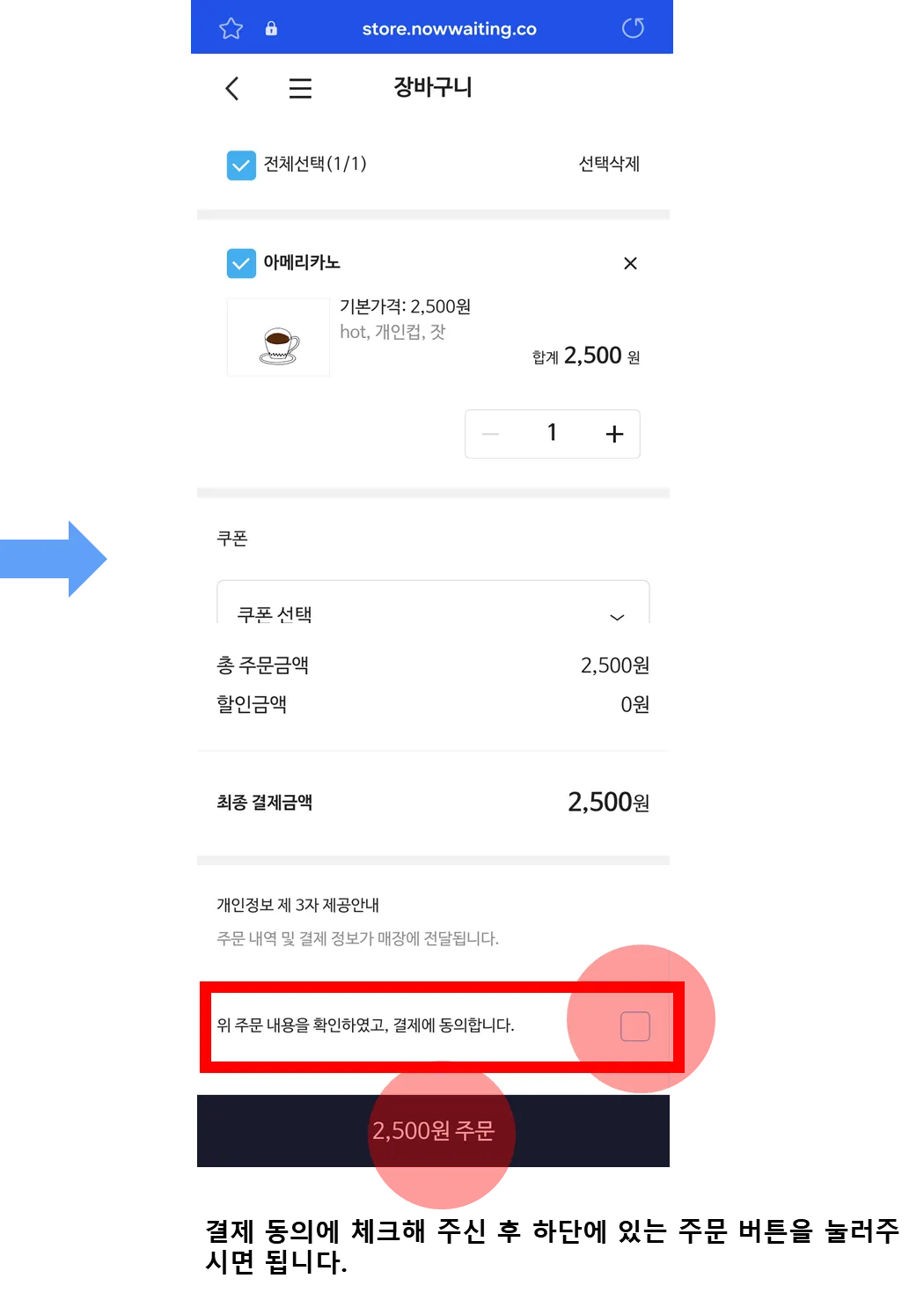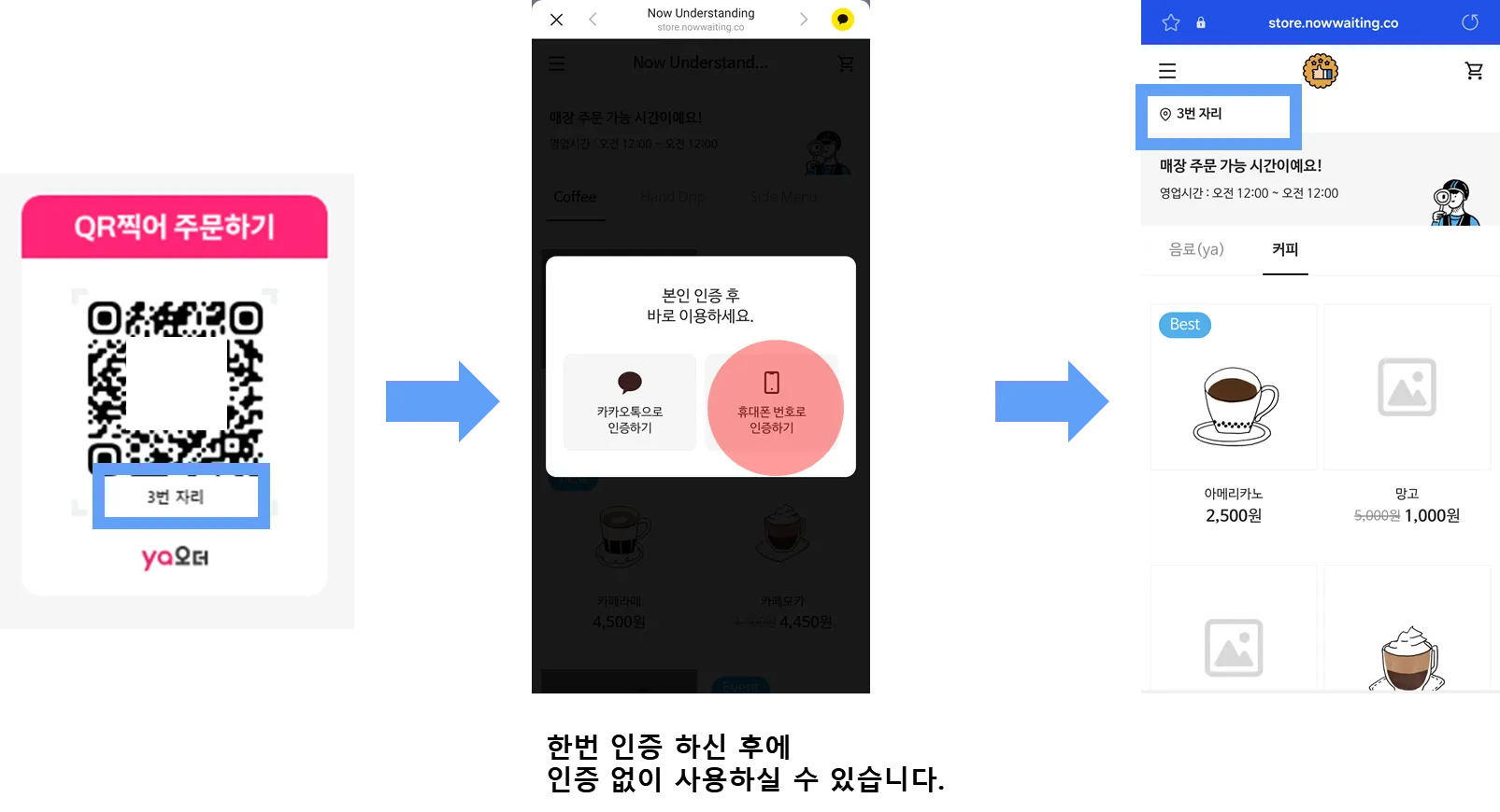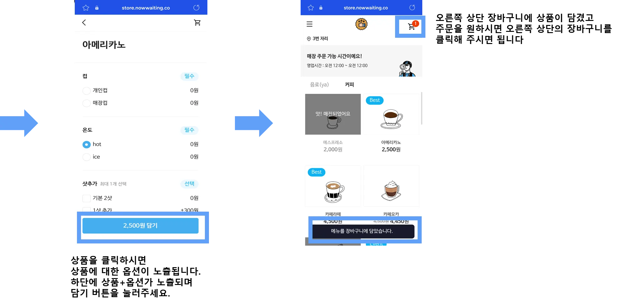 먼저 테이블오더에서 고객이 주문하는 방법은 아래 캡처본으로 참고해 주세요.