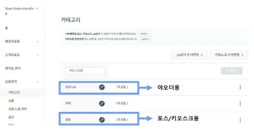 1. 포스 / 키오스크 용 , 픽업오더(야오더) 용으로 카테고리 생성해 주세요.