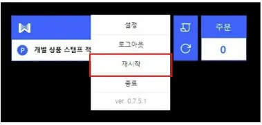 1)설정 아이콘(점세개) 을 눌러서 PC 프로그램을 재시작해주세요.