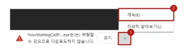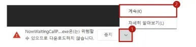 ※ 왼쪽 하단에 위험할 수 있다는 팝업이 뜨면 꺽쇄를 클릭 후, 계속을 눌러주세요.