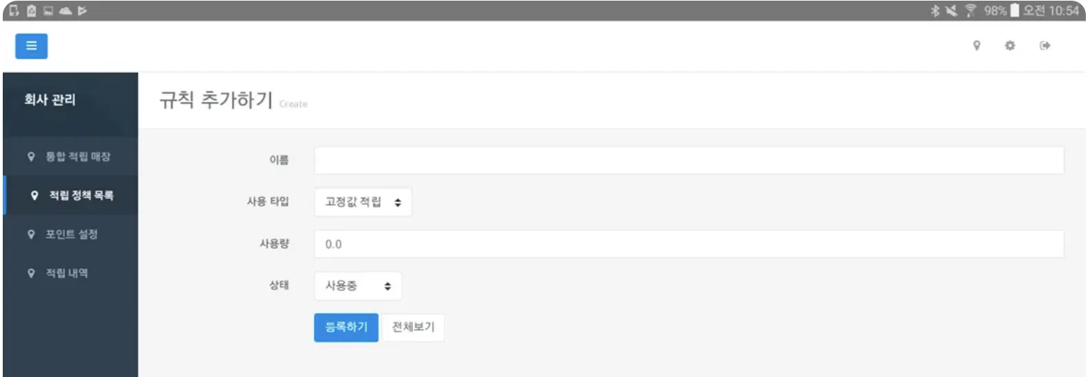 전 지점에서 사용할 적립 설정을 추가합니다.