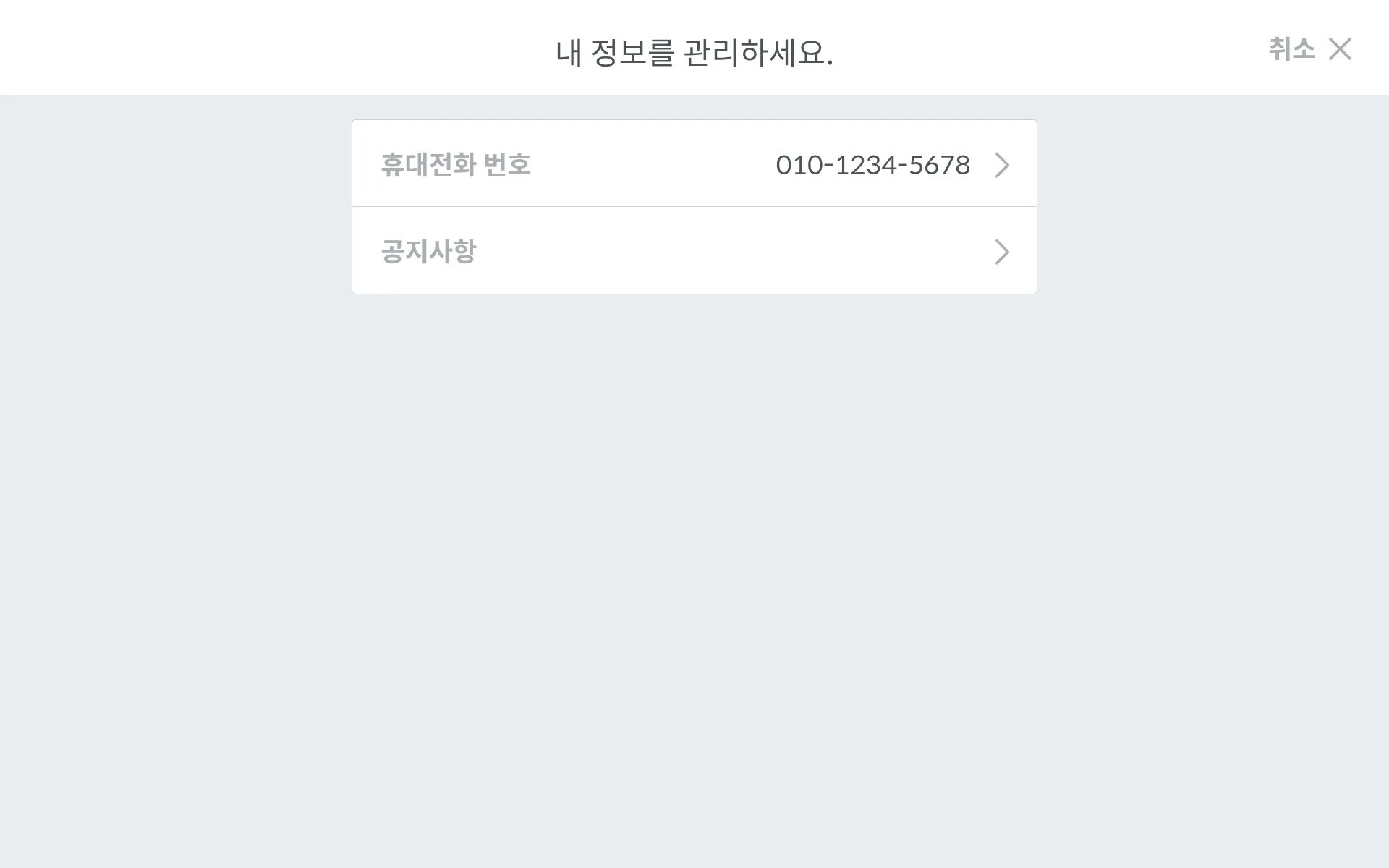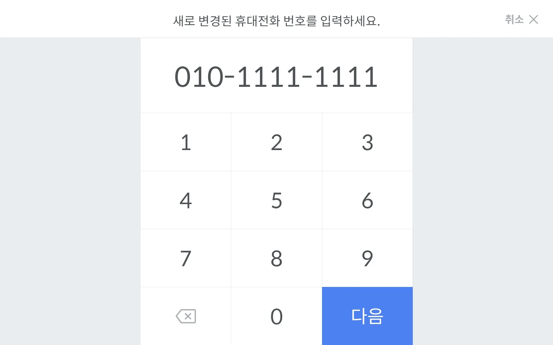 1. 기존 휴대전화 번호를 눌러 새로 사용하실 휴대전화 번호를 입력합니다.