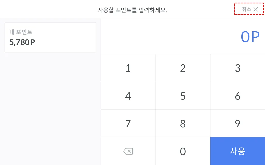 1. 포인트 사용 창이 뜨면, 우측 상단의 취소 버튼을 눌러 창을 닫습니다.