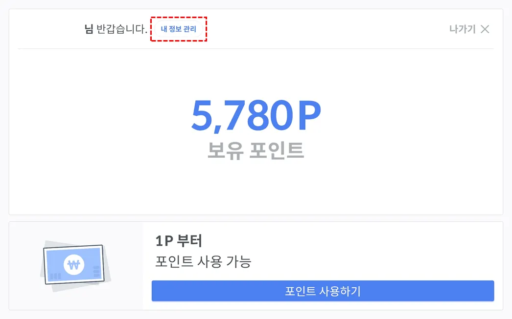 2️⃣ 포인트 사용 창 닫기 & ‘내 정보 관리’ 진입