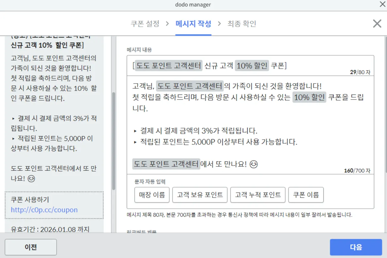 도도는 자동 이벤트 기능을 통해, 고객이 첫 적립을 했을 때 메시지를 자동으로 발송할 수 있는 기능을 제공하고 있습니다. 이 기능을 좀 더 효과적으로 활용하기 위한 팁을 알아보겠습니다.