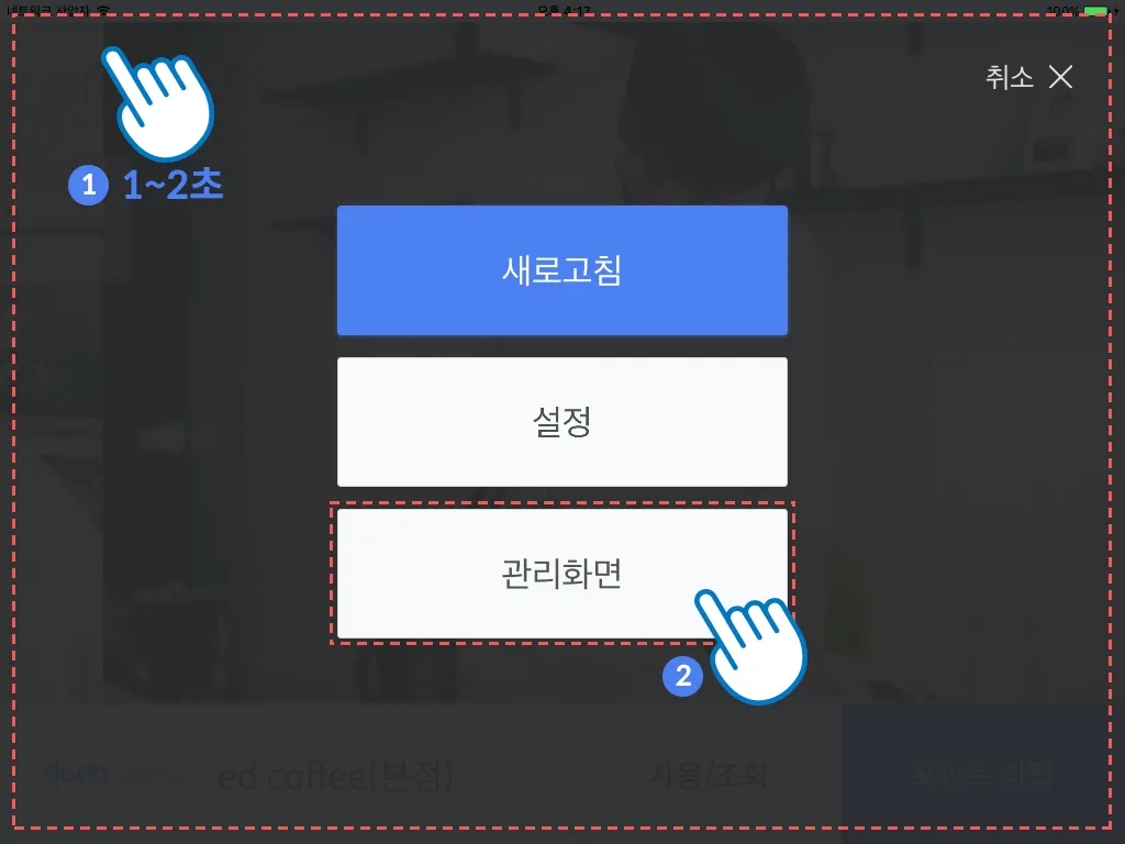 태블릿 화면을 1~2초간 꾹 누른 뒤 나타나는 메뉴에서