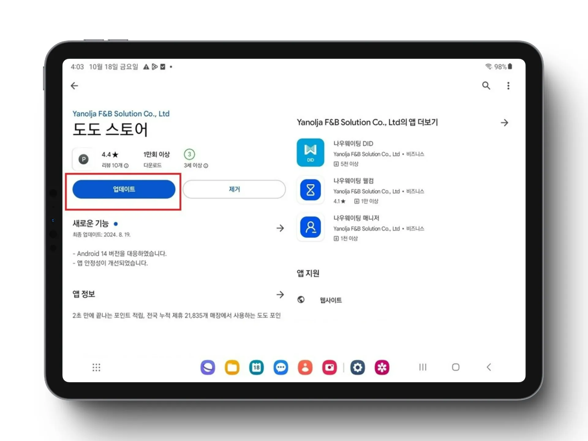 6️⃣ 업데이트 완료 후 도도 스토어 앱 실행
