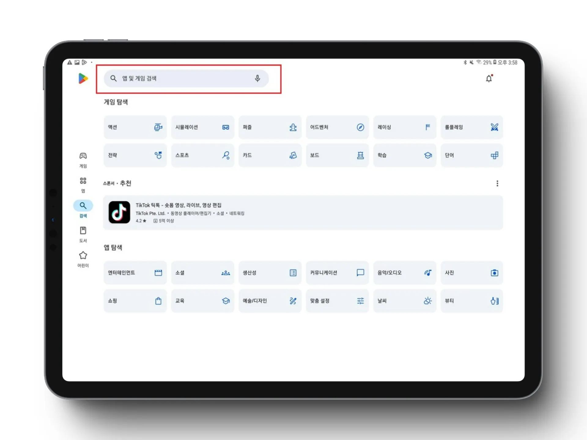 1️⃣ 태블릿 메인 화면에서 Play 스토어 접속