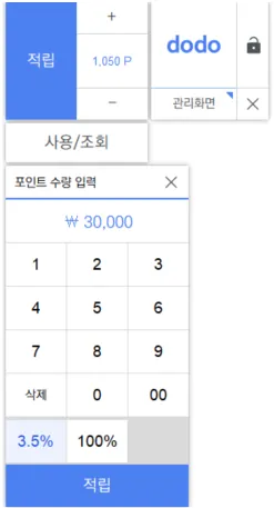 포인트 적립이 필요한 결제가 끝났다면, 포스 화면에서 적립할 포인트(또는 금액)을 먼저 입력합니다.