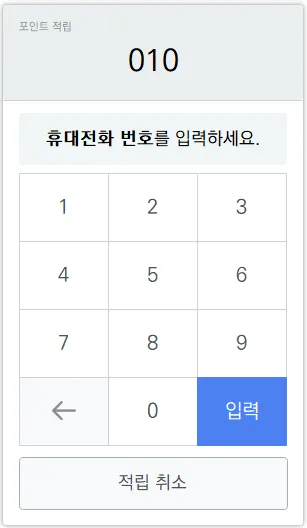 3. 고객 휴대전화 번호를 직접 입력하면 적립이 완료됩니다.