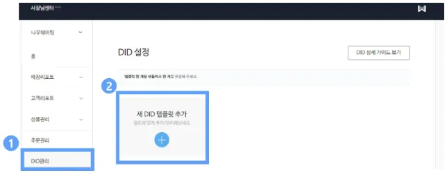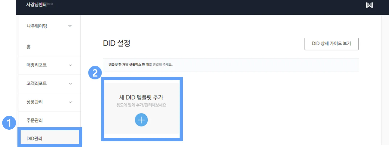 1. 사장님센터 > DID 관리 > 새 DID 템플릿 추가를 눌러 템플릿을 추가해 주세요.