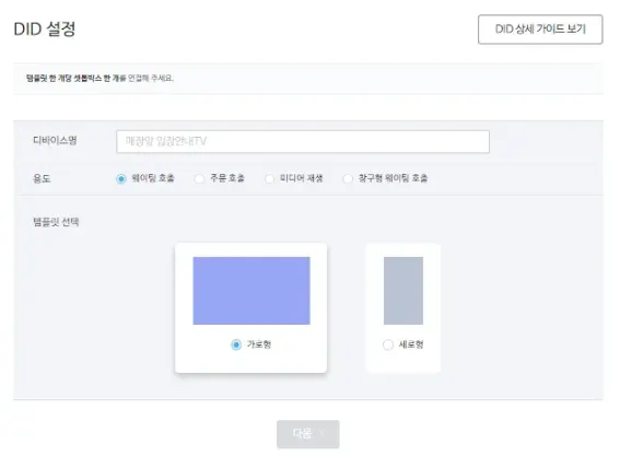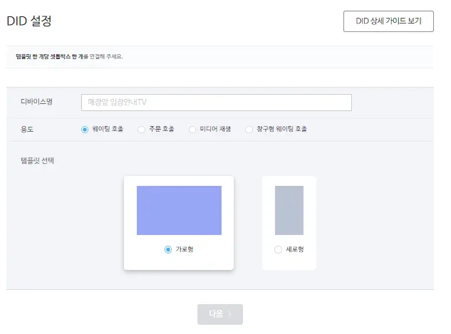 템플릿 선택 : 호출 모니터의 형태에 따라 가로형, 세로형을 체크해주세요.