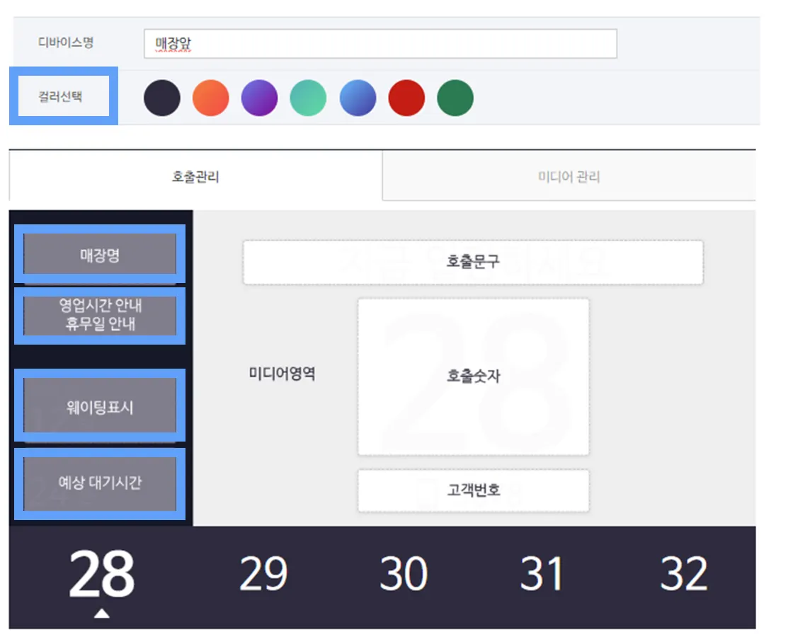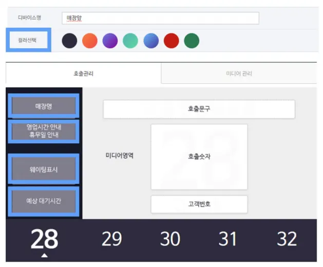 호출숫자 크기 : 화면에 보이는 숫자의 크기를 조절할 수 있습니다.