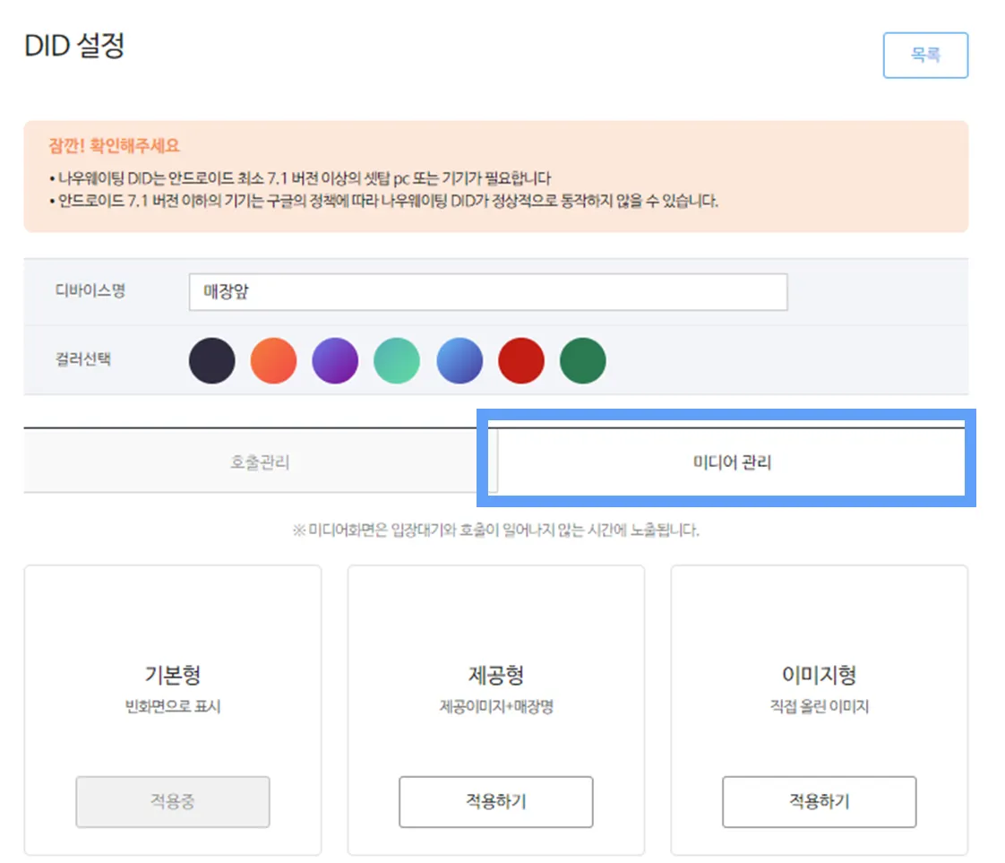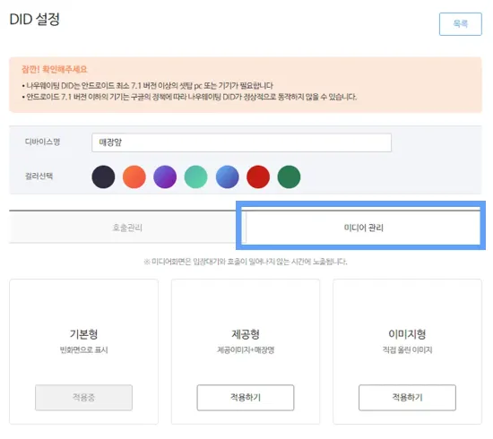 2) [미디어 관리] 탭을 클릭한 후, 원하시는 미디어 형태를 클릭해주세요.