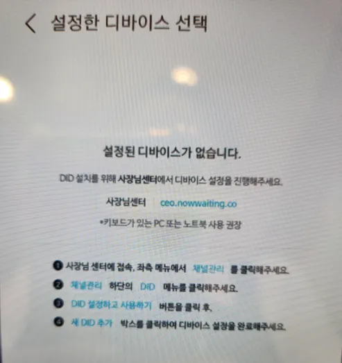 시킨 앱이 웰컴앱이 아닌, 나우웨이팅 DID 앱인 경우 위와 같은 메세지가 노출됩니다.