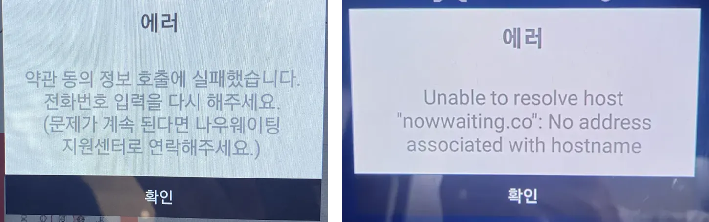 웰컴앱에 오류 메세지가 노출되시거나 웨이팅 등록이 안될 때는 아래 내용을 하나씩 다 확인해 보세요.