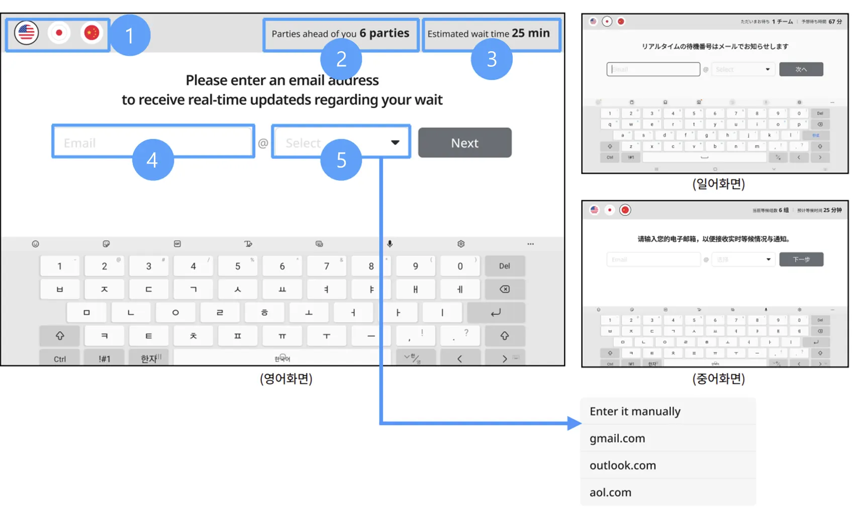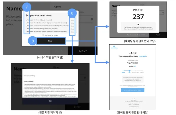 외국인의 경우 이메일로만 웨이팅 접수가 가능합니다.