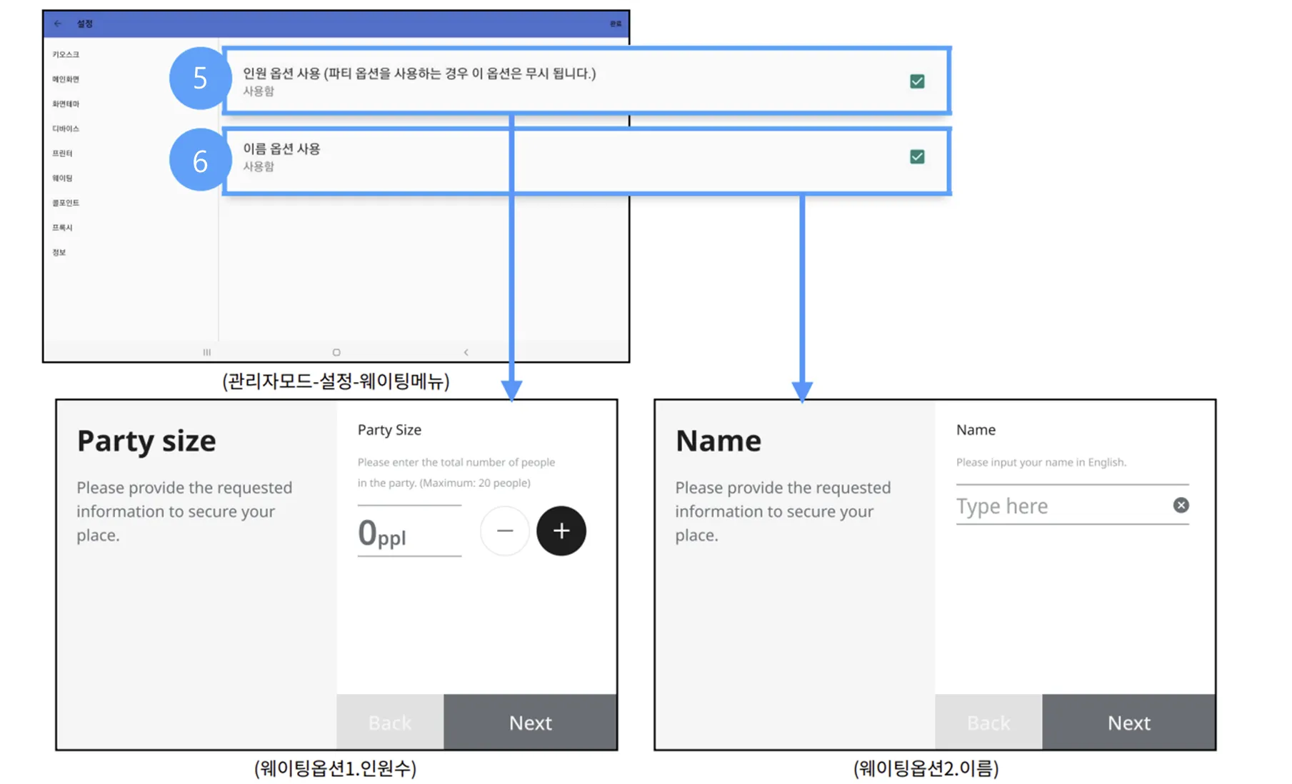 외국인 고객 웨이팅시 웰컴앱 내에서 설정할 수 있는 옵션 값만 받을 수 있습니다.