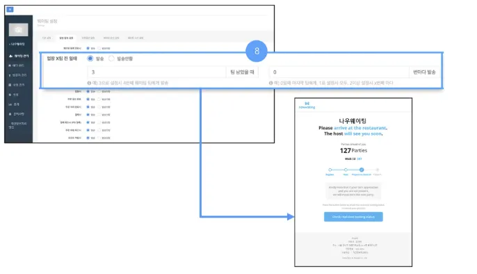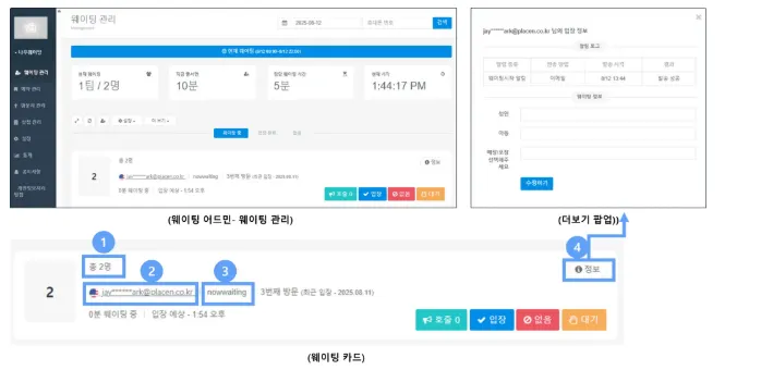 ① 웨이팅 인원수를 표기합니다.