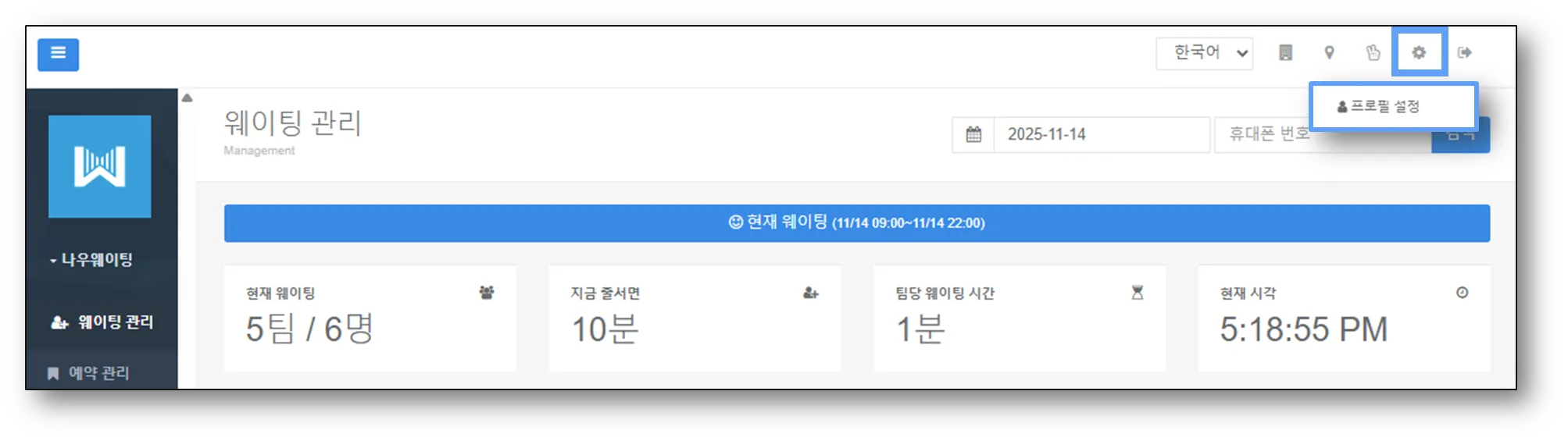 1. 웨이팅 어드민> 웨이팅 관리에 접속해 주세요.