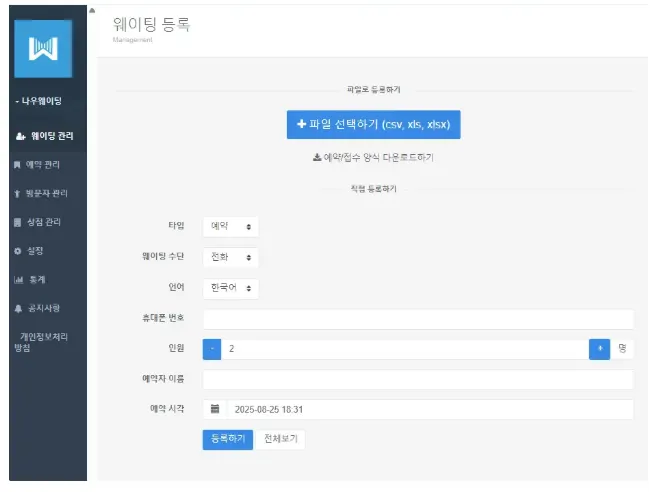 4. 해당 날짜가 되면, 웨이팅 관리 페이지에서 웨이팅 리스트와 예약 리스트를 한 번에 관리할 수 있습니다.